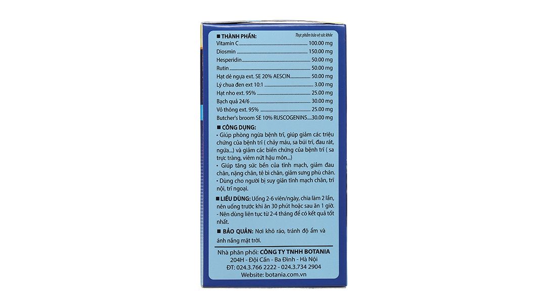 Công dụng | Phòng ngừa, giảm các triệu chứng, biến chứng của bệnh trĩ, tăng sức bền tĩnh mạch |