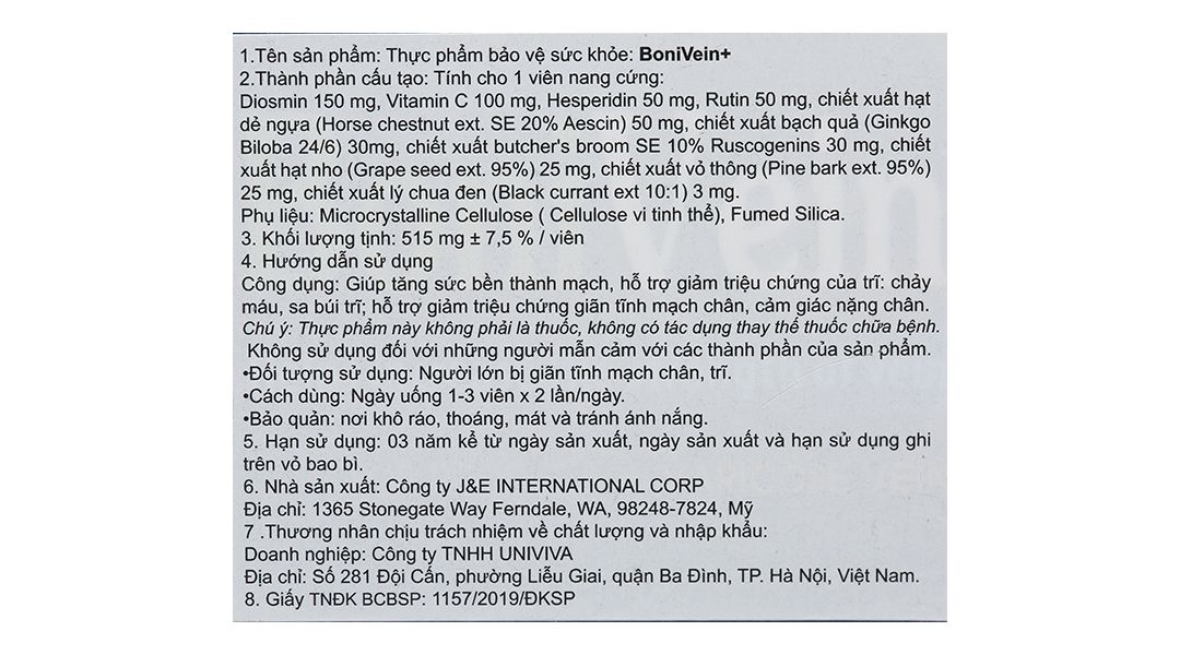 Sản phẩm Boni Vein là thực phẩm chức năng, không có tác dụng thay thế thuốc chữa bệnh.