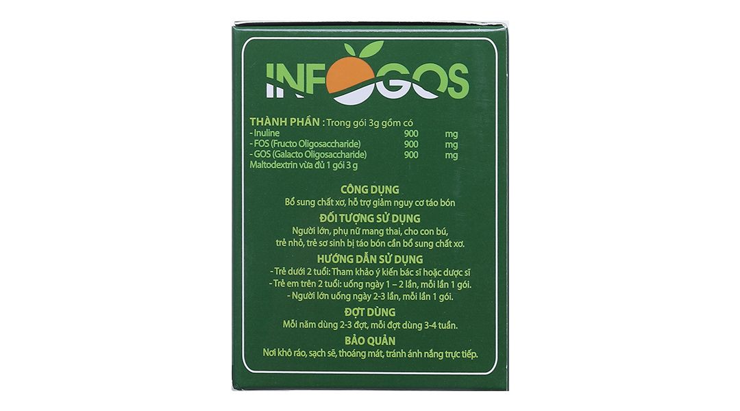 - Bột chất xơ hoà tan Infogos hỗ trợ giảm táo bón hộp 30 gói x 3g