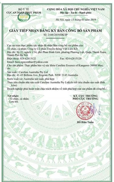 Giấy chứng nhận của Essence Of Kangaroo Capsules 30000 max