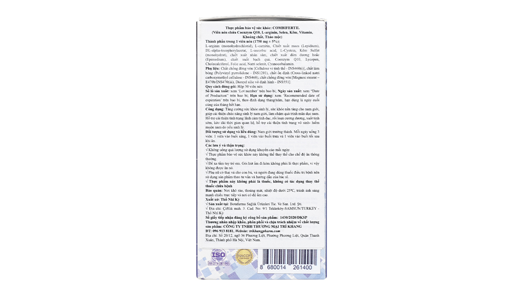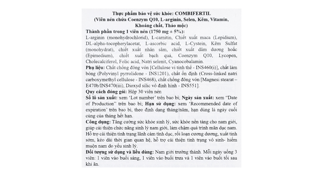 - Combi Fertil hỗ trợ tăng cường sức khỏe sinh lý cho nam giới hộp 30 viên