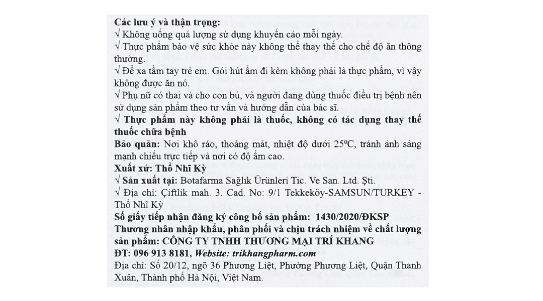 Thực phẩm này không phải là thuốc, không có tác dụng thay thế thuốc chữa bệnh.