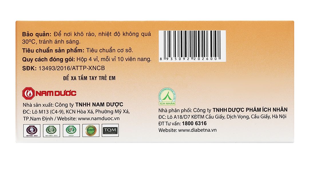 - Tá dược: Amidon, aerosil, PEG 6000, tween 80, talc, magnesi stearat, kali sorbat.