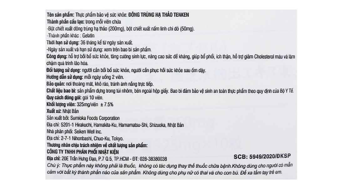 - Đông trùng hạ thảo Tenken bồi bổ cơ thể gói 10 viên