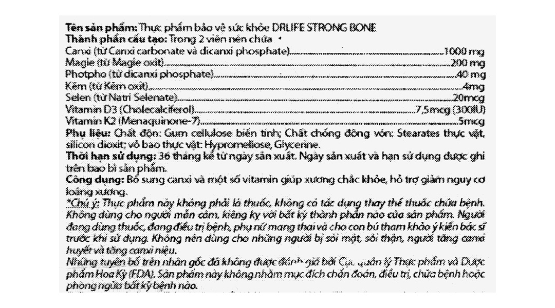 Trong 2 viên nén Drlife Strong Bone chứa: