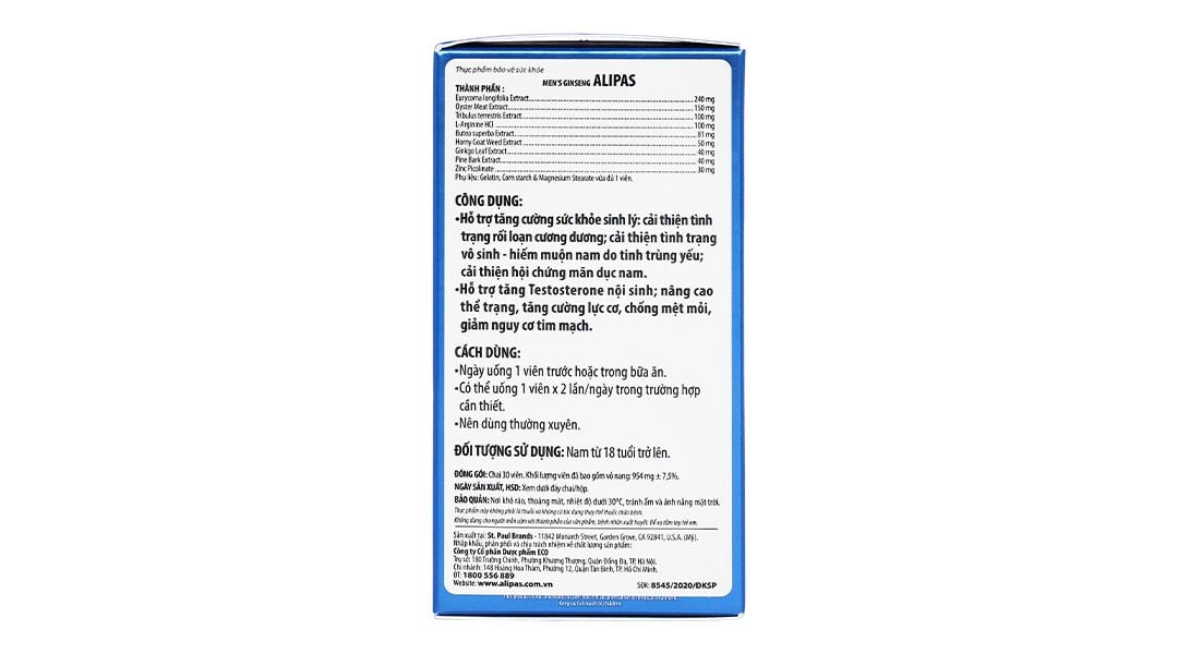 - Ecogreen Men's Ginseng Alipas tăng cường sinh lý nam hộp 30 viên