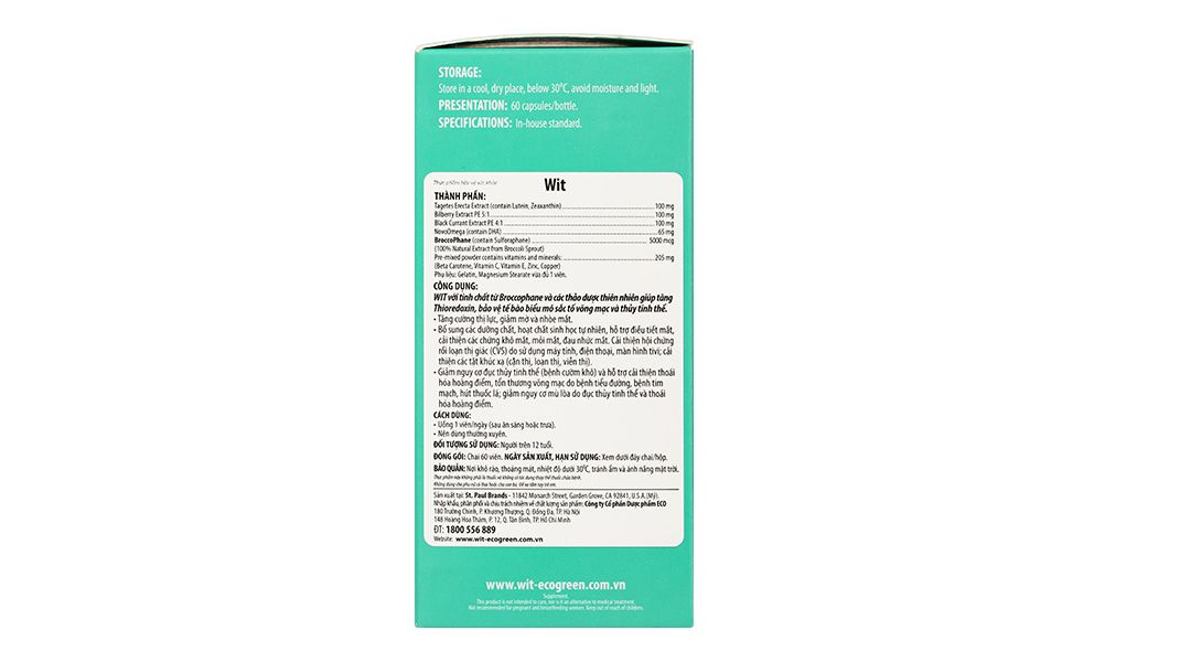 - Ecogreen Wit tăng cường thị lực, giảm mờ, nhòe mắt hộp 60 viên