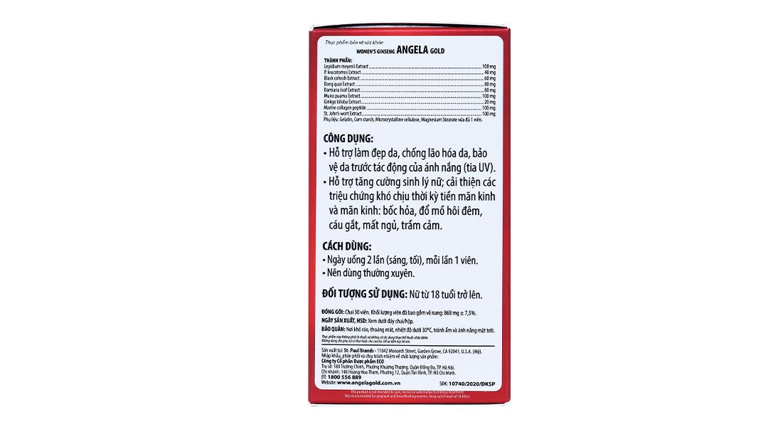 - Ecogreen Woman's Ginseng Angela Gold tăng cường sinh lý nữ chai 30 viên
