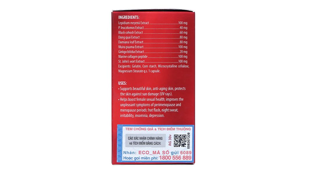 Công dụng | Tăng cường sinh lý nữ, cân bằng hormone nữ, làm đẹp da. |