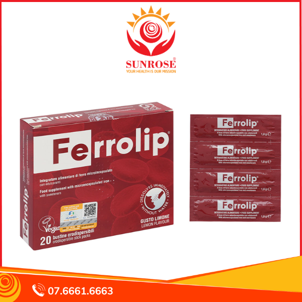 - Ferrolip là sản phẩm sắt sinh học dạng liposome có khả năng hấp thu cao hơn đến 4,7 lần so với sắt hữu cơ thông thường, hạn chế táo bón, kích ứng dạ dày.
