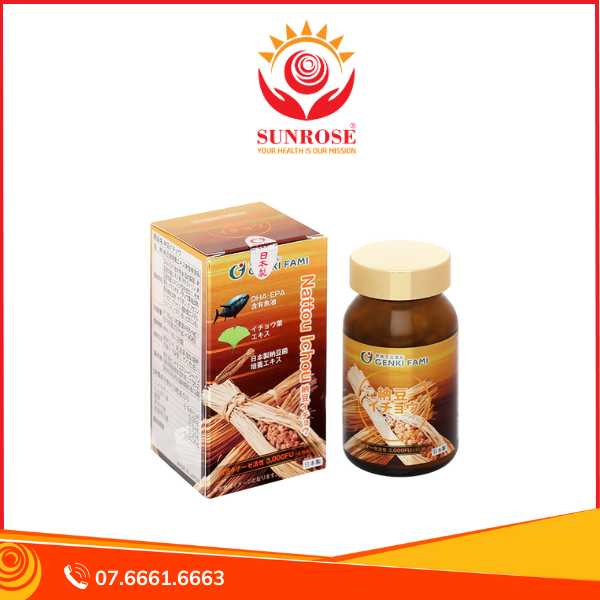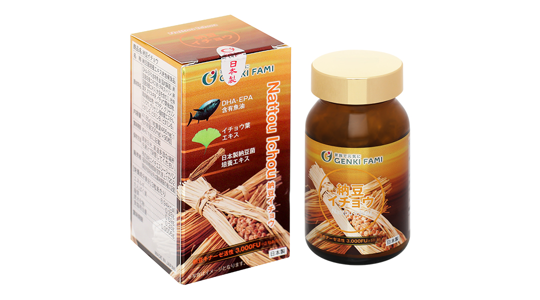 - Genki Fami Nattou Ichou giúp giảm mỡ máu, phòng ngừa đột quỵ hộp 90 viên