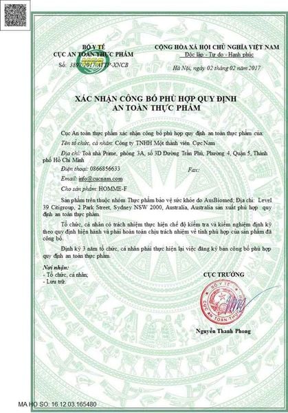 Giấy chứng nhận Homme F
