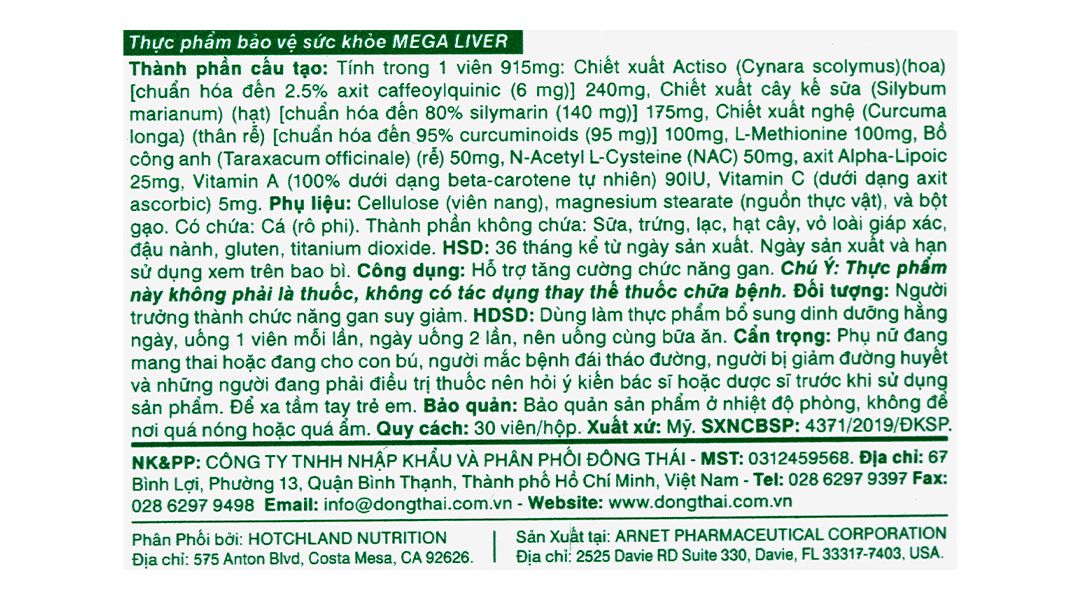- Hotchland Mega Liver giúp giải độc, tăng cường chức năng gan chai 30 viên