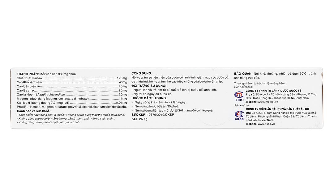 Công dụng | Hỗ trợ giảm sự tiến triển của bướu cổ lành tính, giảm nguy cơ bướu cổ do thiếu iod. |