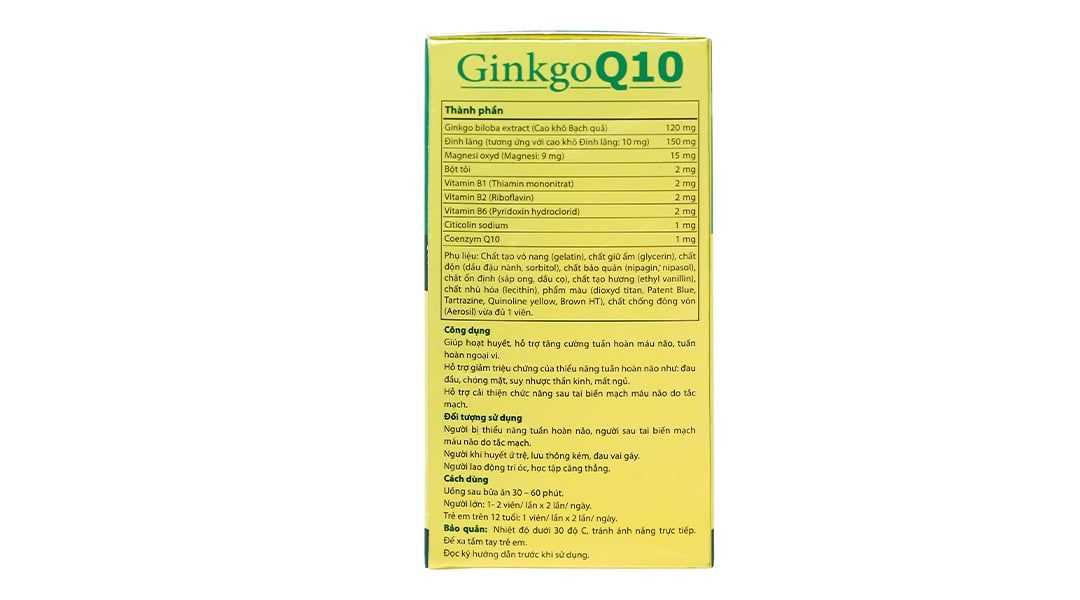 Viên uống dưỡng não Ginkgo Q10 giúp hoạt huyết, hỗ trợ tăng cường tuần hoàn máu não, tuần hoàn ngoại vi.