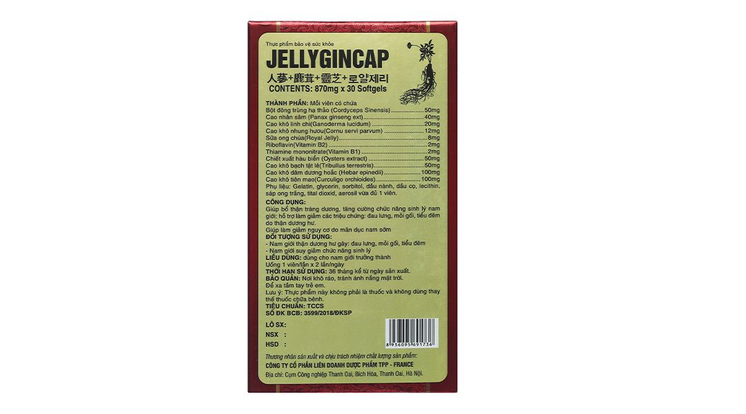 - Jellygin hỗ trợ tăng cường sinh lý nam hộp 30 viên