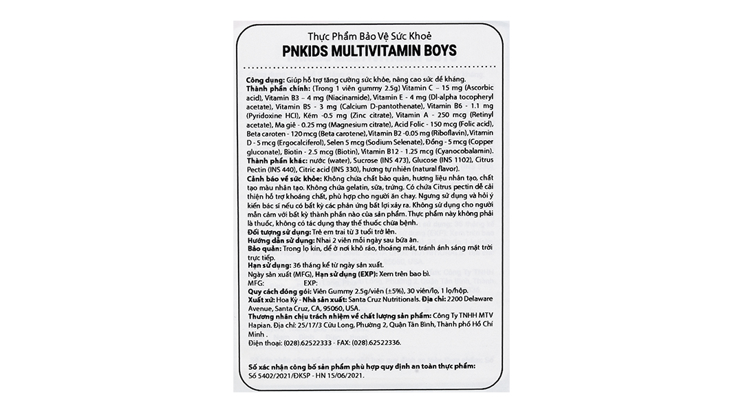 - Kẹo dẻo PN Kids Multi Vitamin + Minerals bổ sung vitamin cho bé trai hộp 30 viên