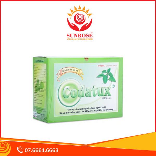 Viên ngậm Codatux là sản phẩm hoàn toàn từ thiên nhiên, được chế xuất từ hỗn hợp các loại tinh dầu, có tác dụng giảm các triệu chứng ho do viêm họng, viêm thanh quản, cảm lạnh, kích ứng họng hầu, ho do hút thuốc lá quá nhiều. Giúp nhuận phế, giảm nghẹt mũi một cách hiệu quả.