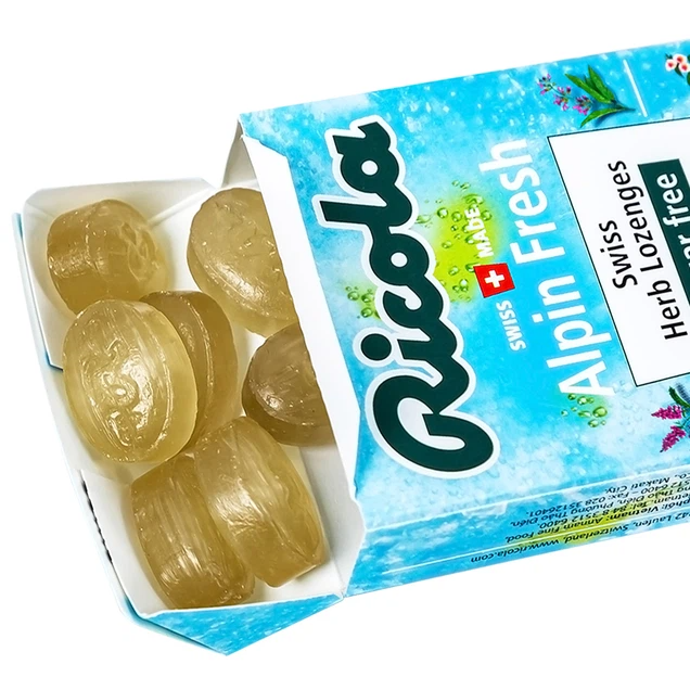- Kẹo ngậm không đường Ricola Alpin Fresh hỗ trợ thông cổ, mát họng, giảm ho (40g)