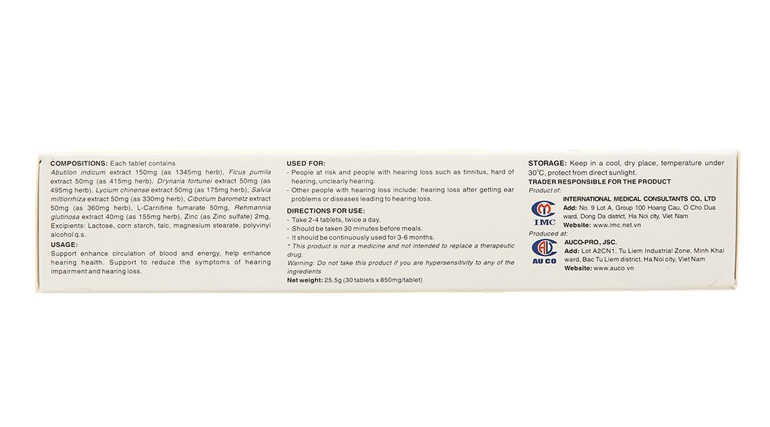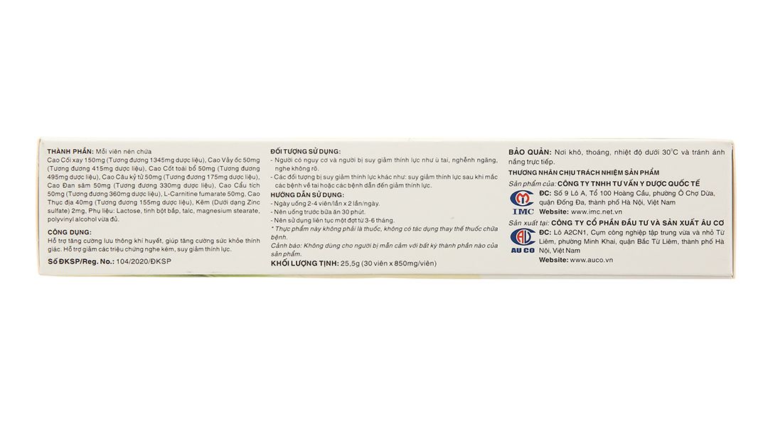 Công dụng | Giúp tăng cường sức khỏe thính giác, tăng cường thính lực, giảm ù tai, nghe kém. |