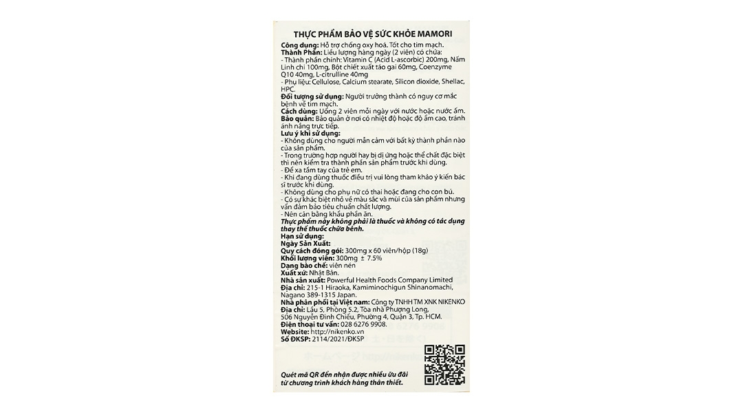 - Mamori CoQ10 hỗ trợ chống oxy hóa, tốt cho tim mạch hộp 60 viên