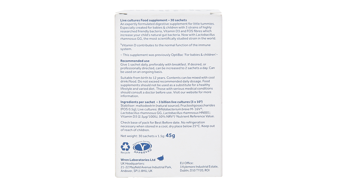 Men vi sinh Optibac Babies & Children bổ sung lợi khuẩn cho đường ruột hộp 30 gói