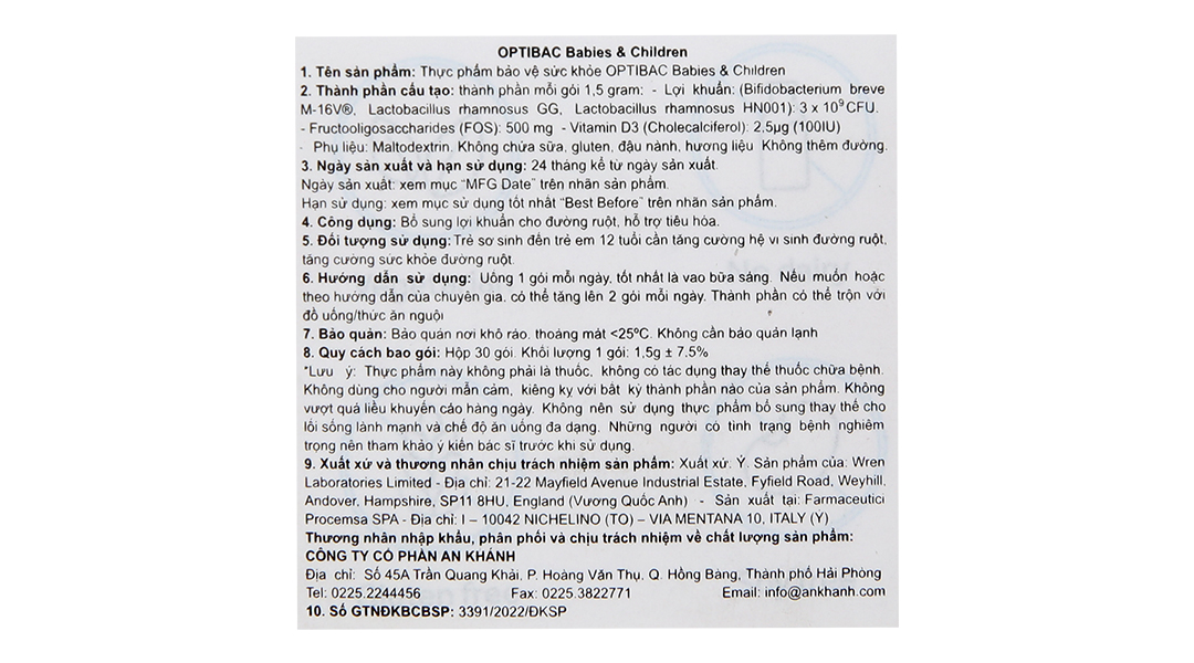 - Men vi sinh Optibac Babies & Children bổ sung lợi khuẩn cho đường ruột hộp 30 gói