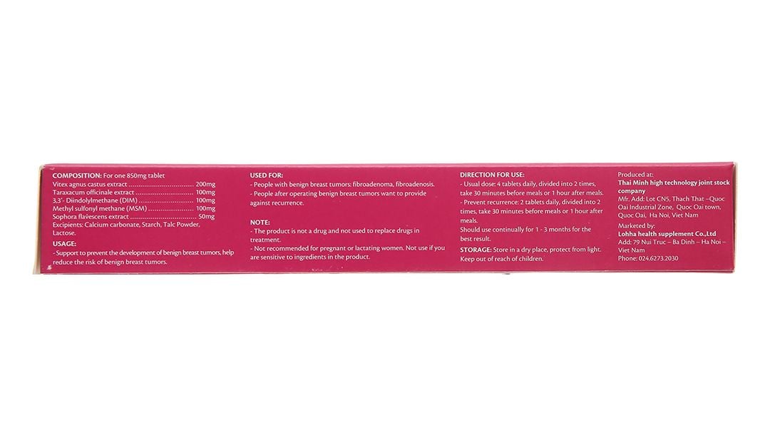 Công dụng | Giúp hỗ trợ làm chậm sự phát triển của u xơ tuyến vú. |