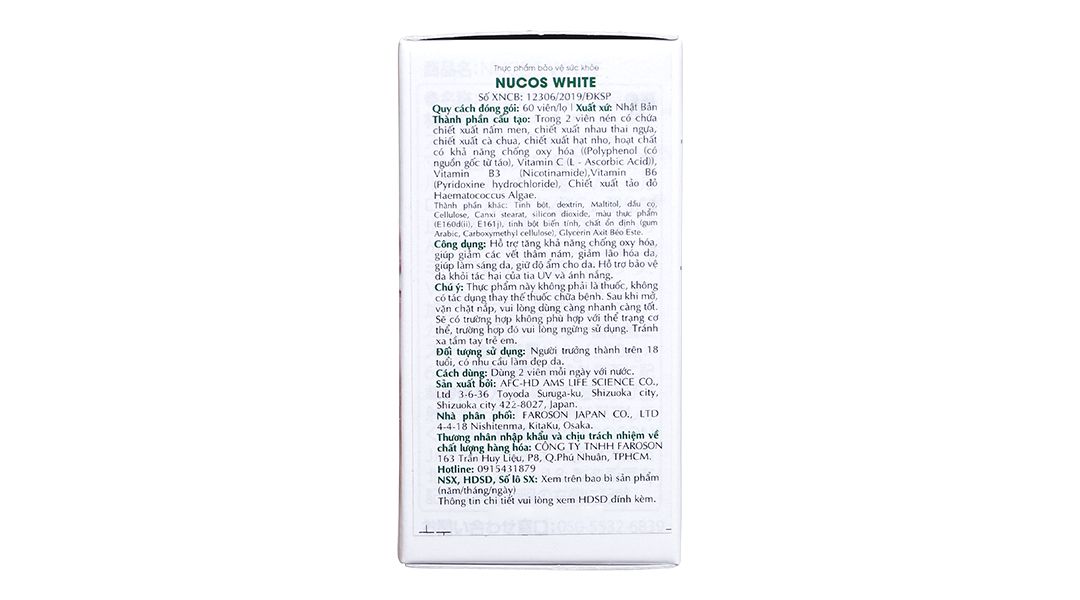 - Nucos White New Placenta hỗ trợ trắng da, giảm nám hộp 60 viên