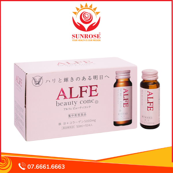 - Nước uống Alfe Beauty Conc bổ sung collagen, giúp da sáng đẹp mịn màng hộp 10 chai x 50ml