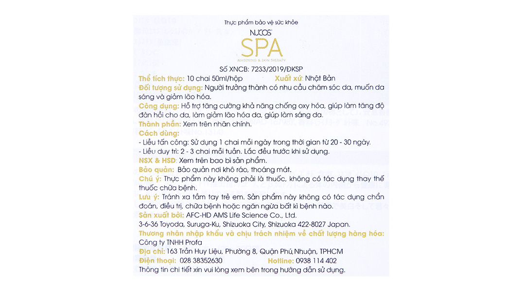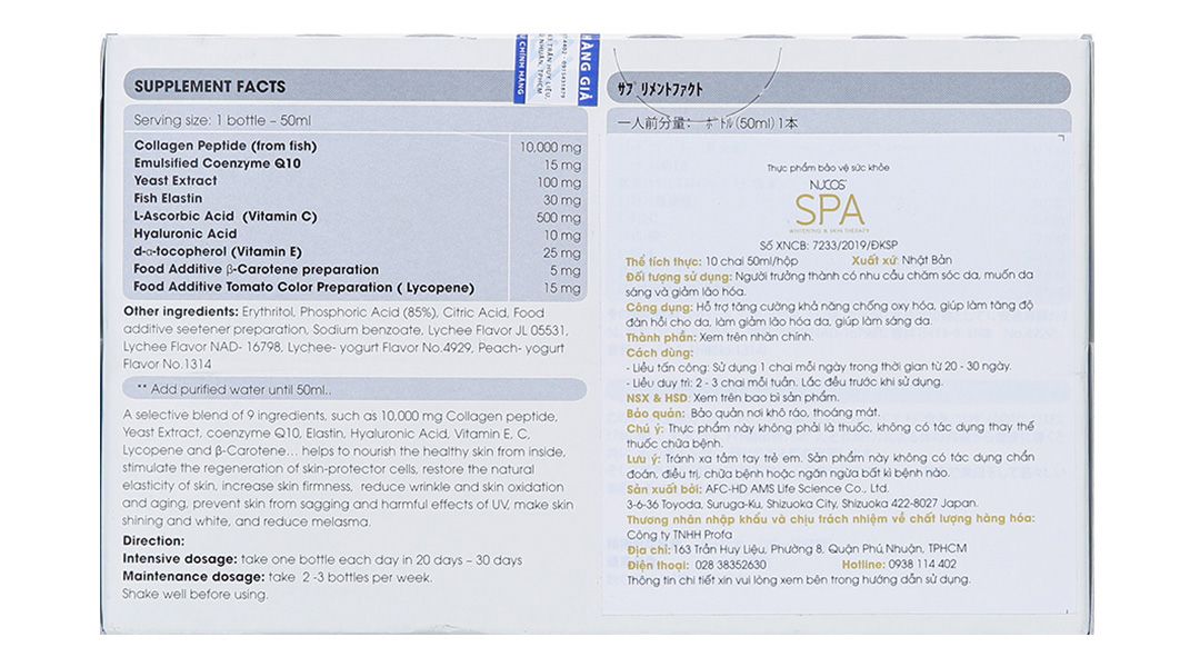 - Nước uống Nucos Spa hạn chế lão hóa, làm đẹp da hộp 10 chai x 50ml