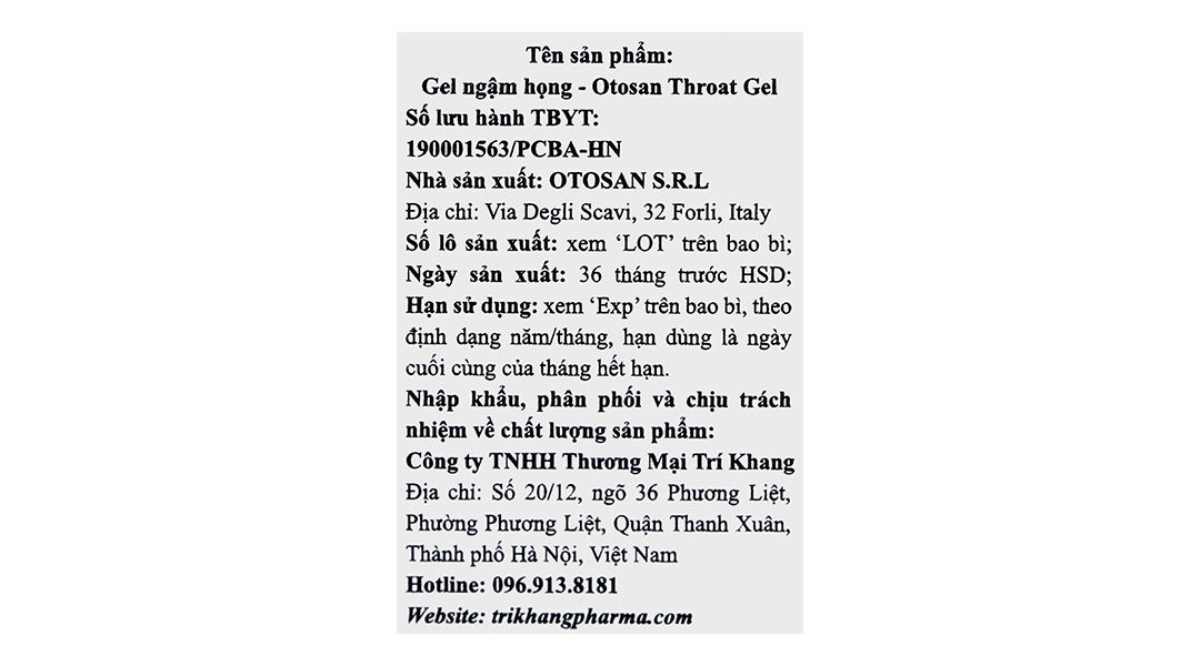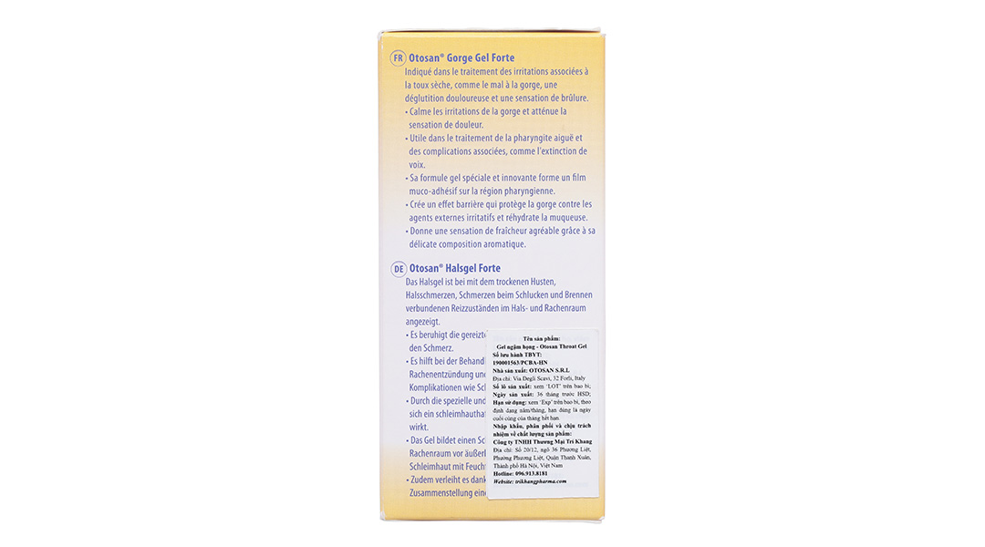 - Otosan Throat Gel Forte hỗ trợ giảm ho, đau rát họng hộp 14 gói x 10ml