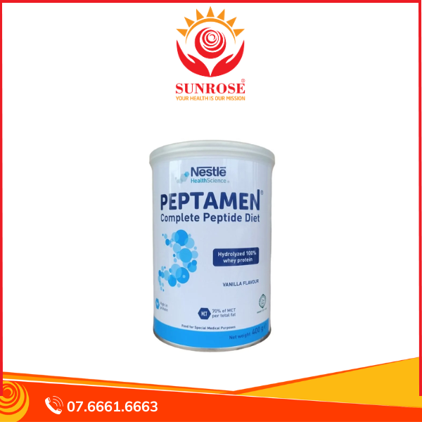 Peptamen gồm đạm whey 100%. Được thủy phân toàn phần thành peptides, giúp cải thiện sự tổng hợp protein. Duy trì tính toàn vẹn của ruột và duy trì chức năng gan.