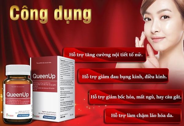 Viên uống này là sản phẩm hỗ trợ tốt cho phái đẹp trong thời kỳ tiền mãn kinh hoặc sau sinh. Đây là độ tuổi nội tiết tố có nhiều thay đổi. Chính vì thế, viên uống QueenUp được xem là “xuất hiện đúng lúc”. Nó do các chuyên gia thuộc Viện Hàn lâm Khoa học và Công nghệ Việt Nam trực tiếp nghiên cứu và sản xuất. Nhờ vậy, người dùng có thể an tâm lựa chọn sử dụng.