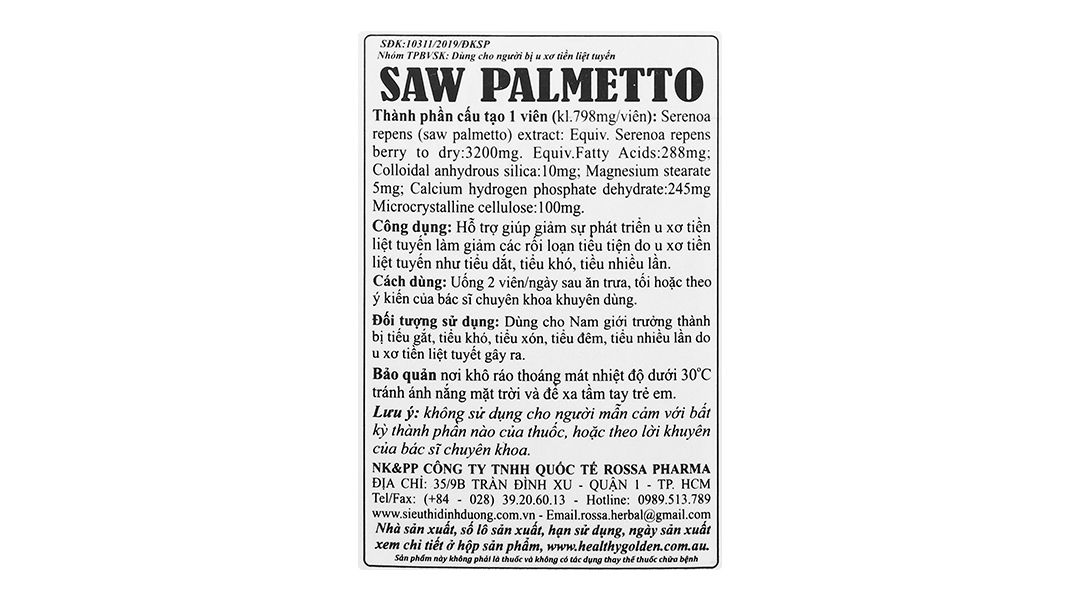 - Saw Palmetto hỗ trợ giảm u xơ tiền liệt tuyến chai 30 viên