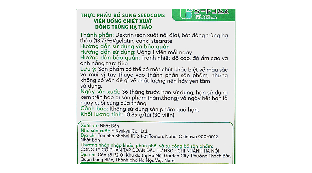 - Seedcoms đông trùng hạ thảo hỗ trợ tăng đề kháng, giảm căng thẳng gói 30 viên