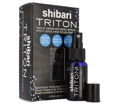 Shibari Triton là dạng chai xịt hỗ trợ chống xuất tinh sớm, kéo dài thời gian quan hệ cho nam giới. Điểm nổi bật ở sản phẩm này là có chứa hoạt chất gây tê tại chỗ, giúp “cậu nhỏ” giảm bớt sự hưng phấn và kích thích quá độ. Chai xịt Shibari Triton có xuất xứ từ Mỹ và là một trong những sản phẩm hỗ trợ chống xuất tinh được ưa chuộng trên thị trường hiện nay.