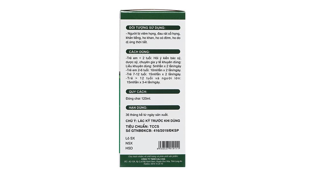 Đối tượng sử dụng | Người lớn, trẻ em từ 2 tuổi trở lên. |
