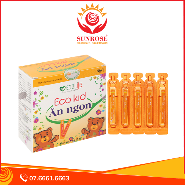 - Siro Eco Kid Ăn Ngon bổ sung kẽm, vitamin và lysine hỗ trợ ăn ngon hộp 20 ống x 10ml