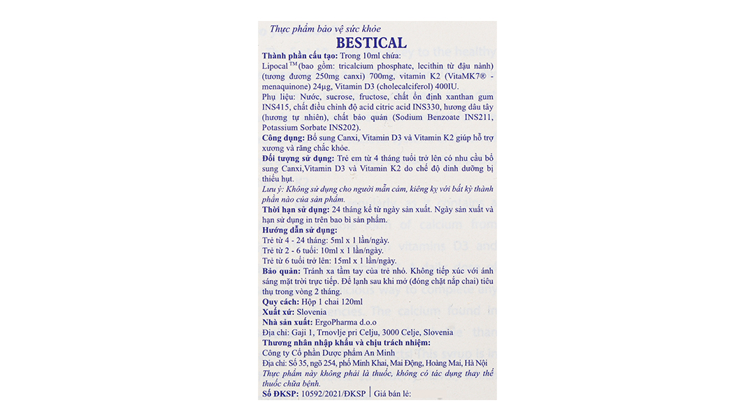 - Siro ErgoPharma Bestical hỗ trợ xương và răng chắc khỏe chai 120ml