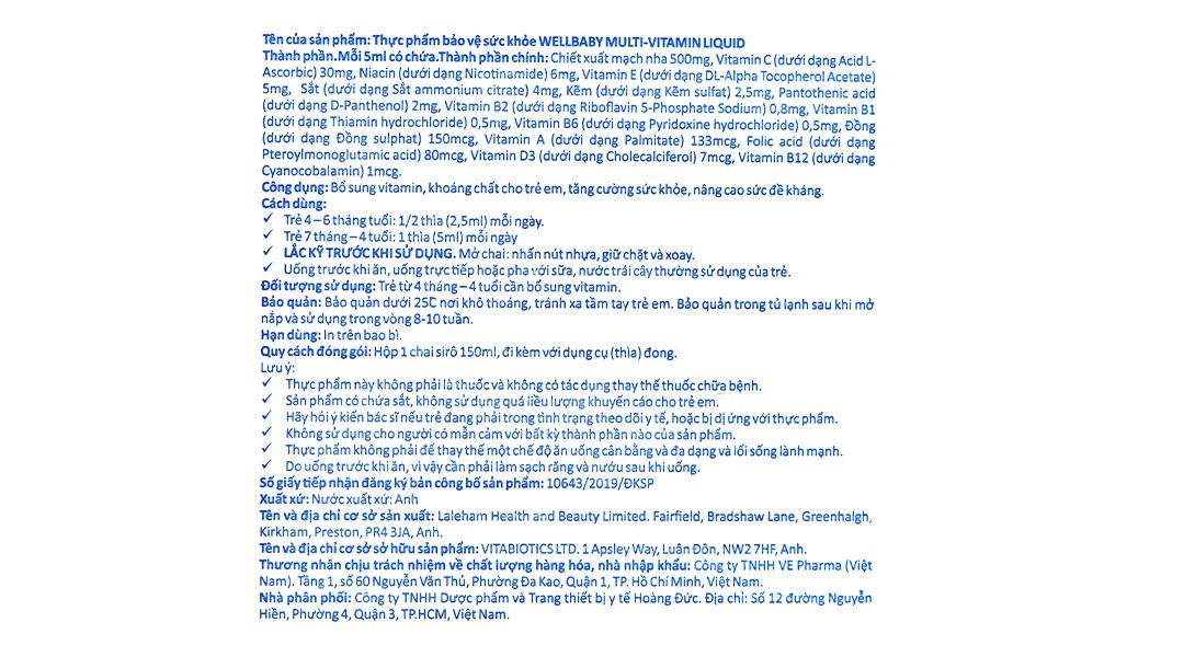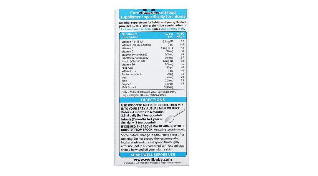 Mỗi 5ml Vitabiotics Wellbaby có chứa: