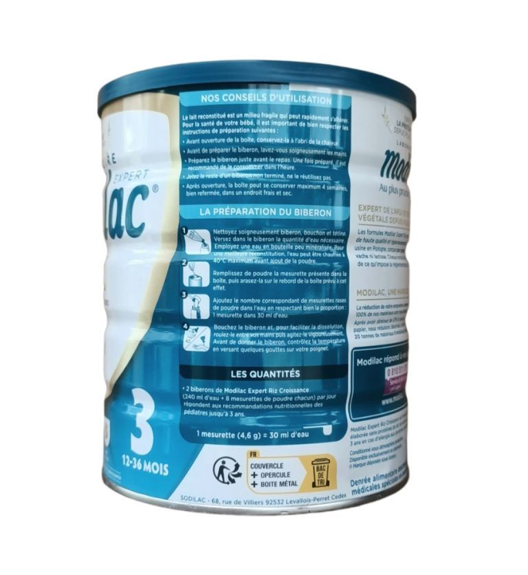Sữa Modilac Riz 3 Được nhập khẩu nguyên lon từ Pháp về Việt Nam. Sản phẩm không chứa lactose. Có thể sử dụng an toàn dành cho trường hợp bất dung nạp latose. Đây là sản phẩm thuộc tập đoàn Savencia. Top về sản xuất bơ sữa tại Pháp và toàn cầu. Các sản phẩm của Savencia có mặt tại 120 quốc gia.