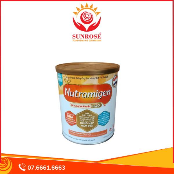 Sữa Nutramigen Lon 400g tại cửa hàng Sữa Mimi. Thực phẩm dinh dưỡng dành cho trẻ bị dị ứng đạm sữa bò. Sản phẩm với công thức chứa đạm thủy phân toàn phần. Được bổ sung LGG. Không chứa lactose. Đầy đủ dưỡng chất cần thiết cho sức khỏe và sự phát triển toàn diện của trẻ.