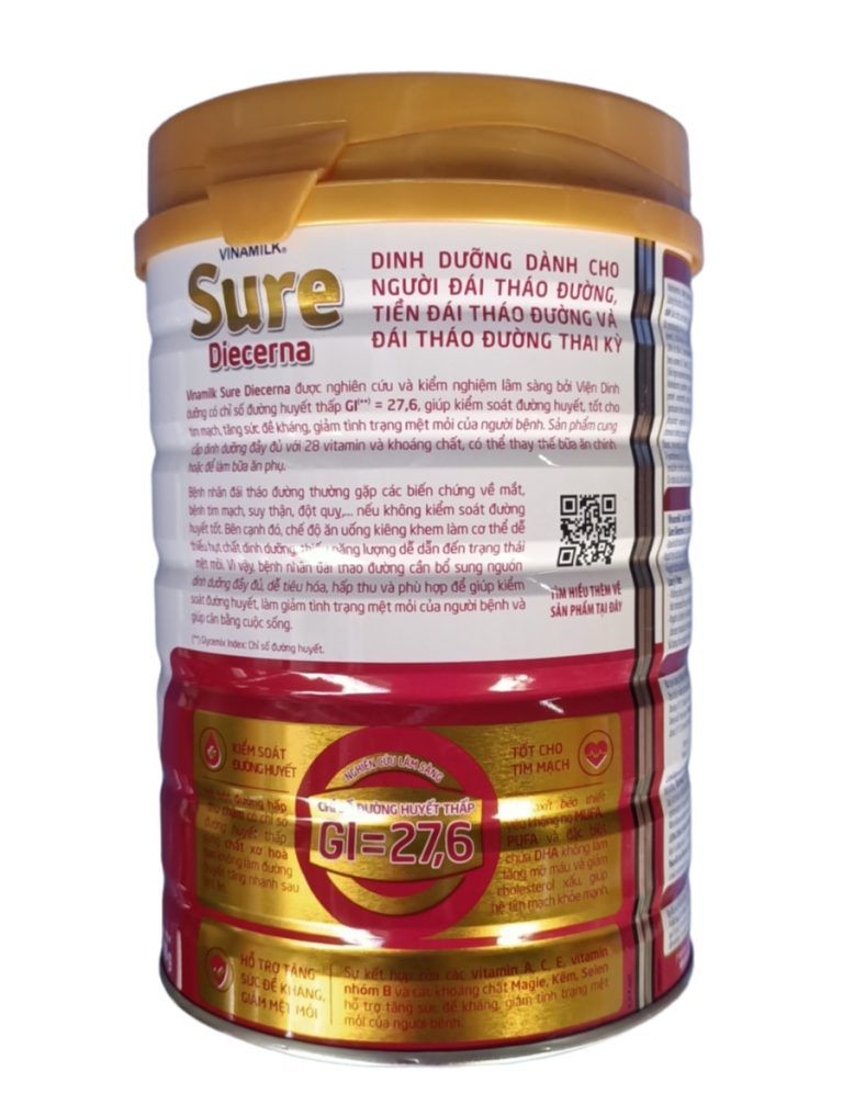Sữa Sure Diecerna – Dinh dưỡng đặc chế dành cho người đái tháo đường, tiến đái tháo đường và phụ nữ thai kỳ giúp kiểm soát đường huyết, tốt cho tim mạch, tăng cường sức đề kháng và giảm tình trạng mệt mỏi của người bệnh. Sure Diacerna được nghiên cứu và kiểm nghiện lâm sàng bởi viện dinh dưỡng quốc gia, có chỉ số đường huyết thấp GI = 27.6
