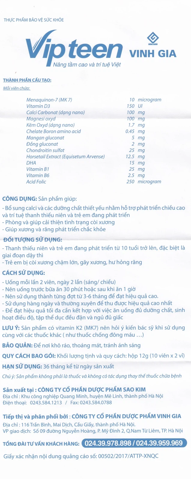 - Thực phẩm bảo vệ sức khỏe Vipteen (2 vỉ x 10 viên)