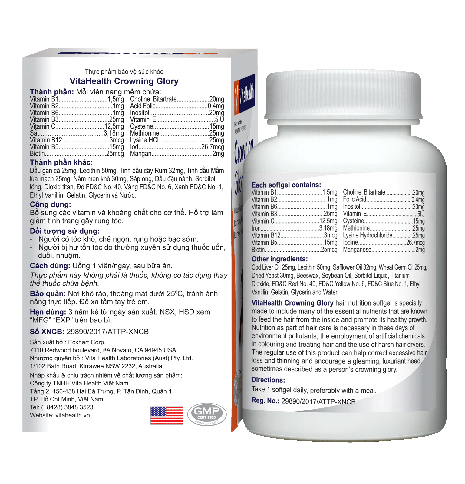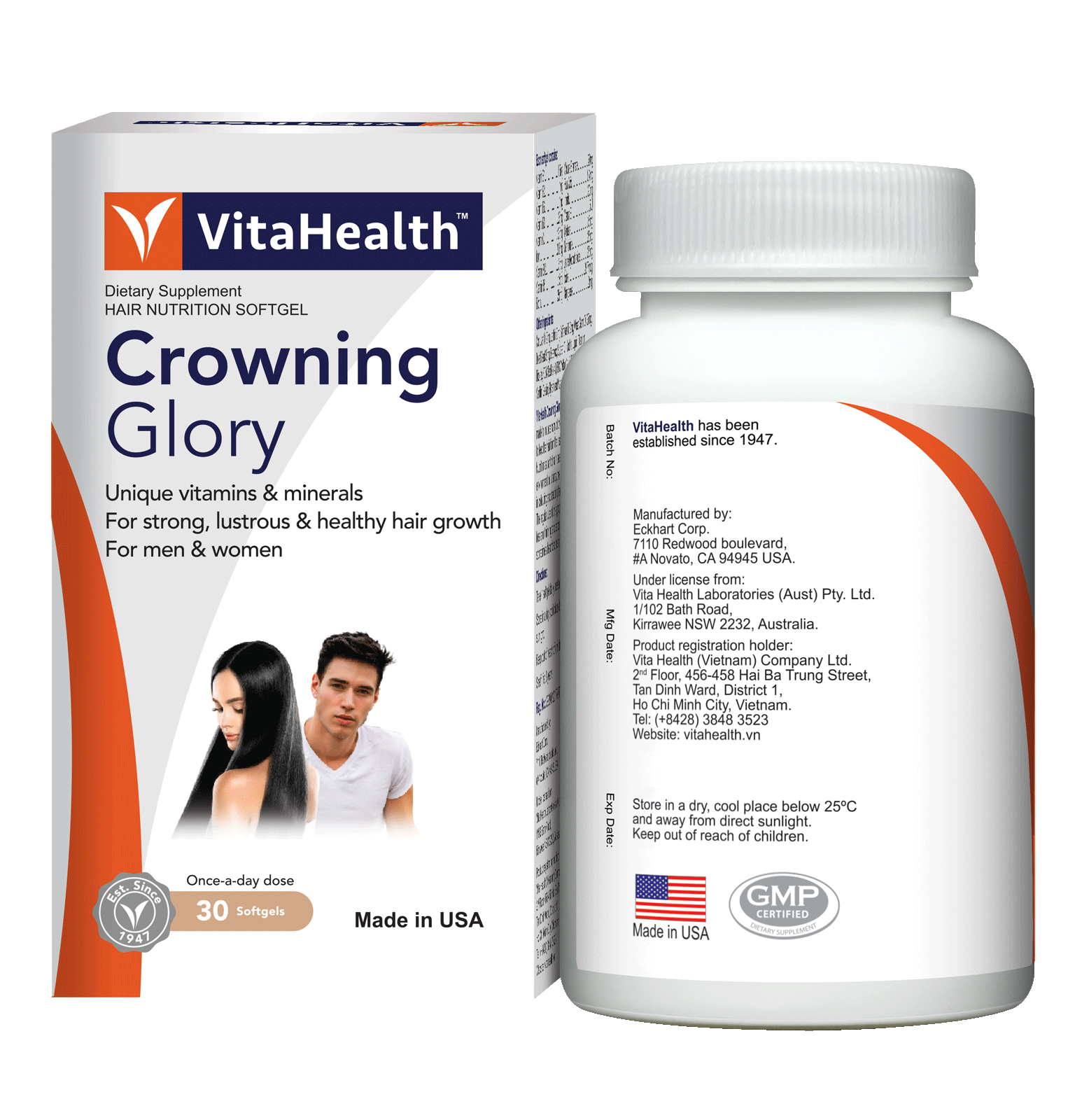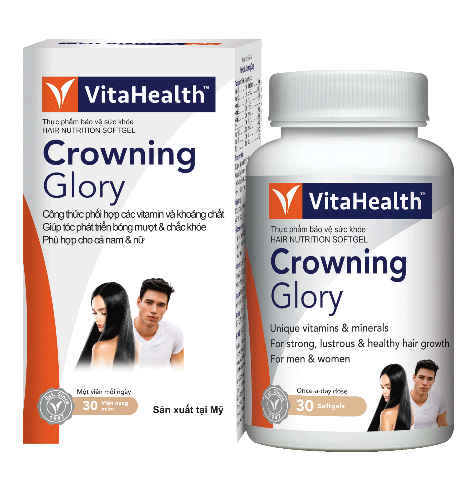 - Thực phẩm bảo vệ sức khỏe VitaHealth Crowning Glory giúp tóc bóng mượt và chắc khỏe (30 viên)