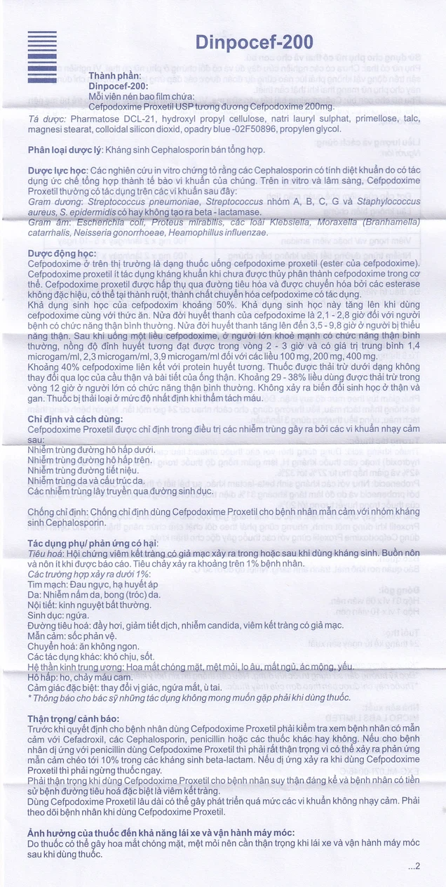 Trước khi sử dụng thuốc Dinpocef 200mg, bạn cần đọc kỹ hướng dẫn sử dụng và tham khảo thông tin bên dưới.