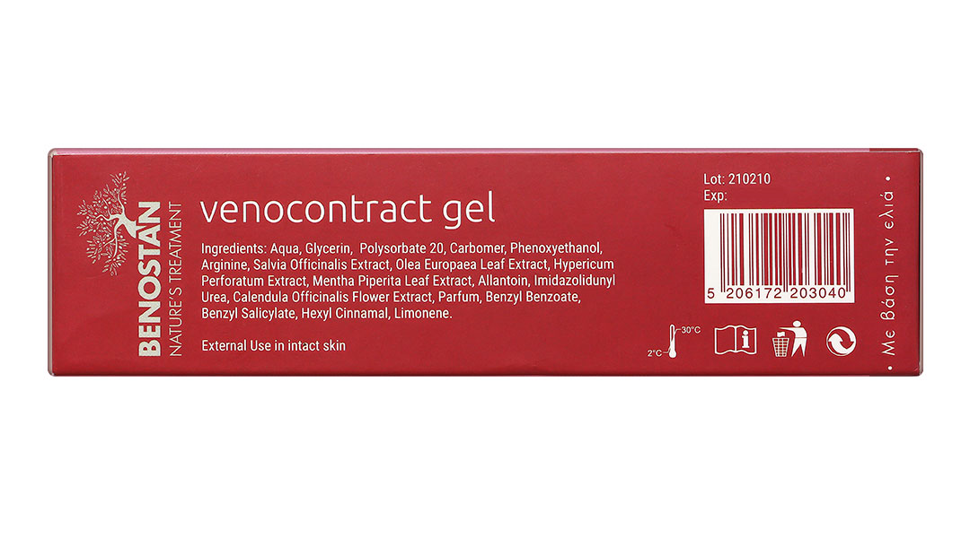 Venocontract Gel có tính êm dịu từ dịch chiết lá Olea Europaea chứa polyphenols, vitamin A, E & K có hoạt tính chống oxy hóa, giữ ẩm, làm mềm da.