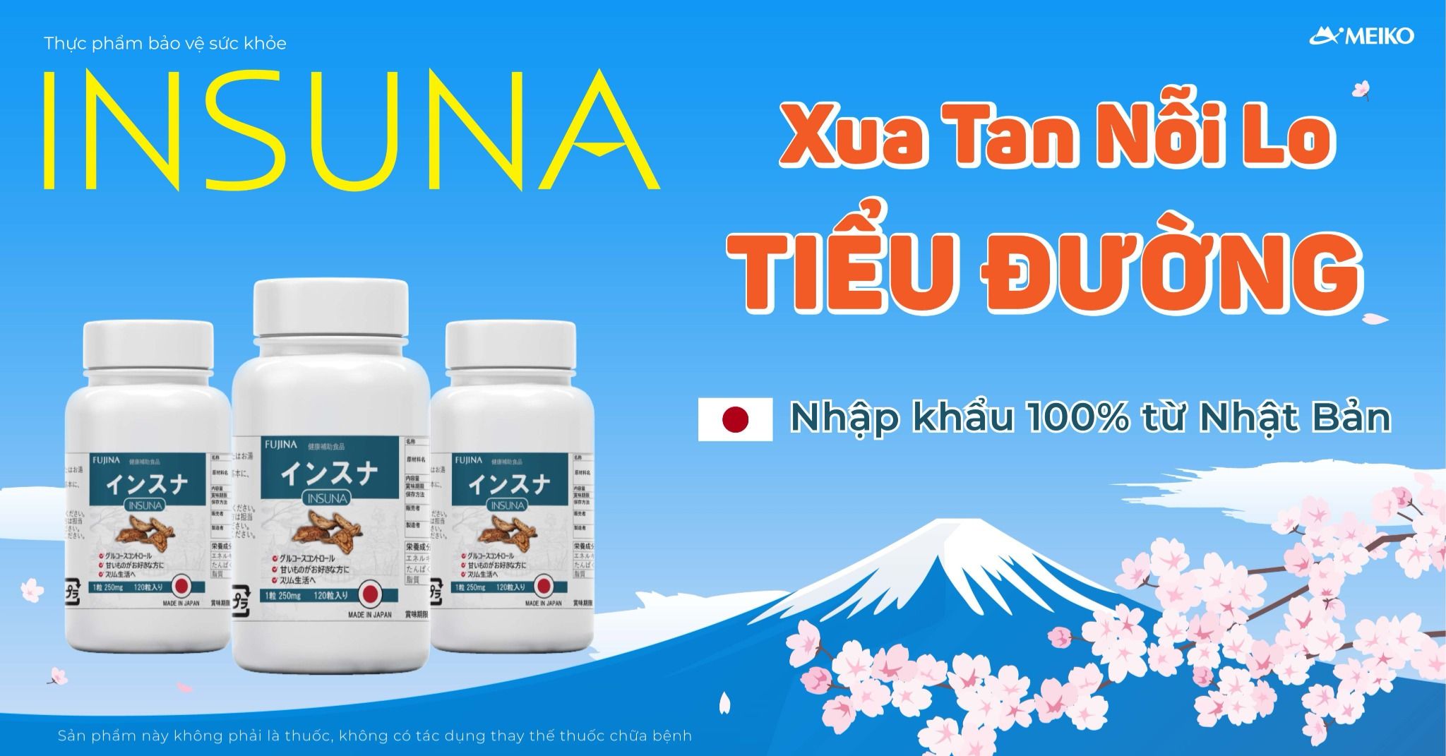 - INSUNA - Viên uống Hỗ Trợ Ổn Định Đường Huyết, Hàng chuẩn Nhật Bản, Hộp 120 Viên