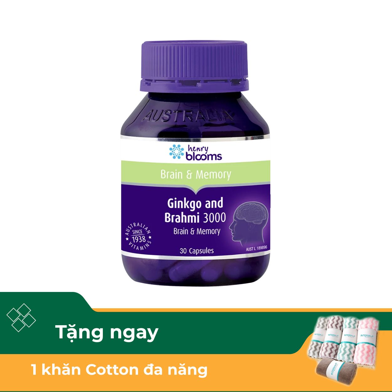 Viên uống Ginkgo And Brahmi 3000 Henry Blooms hỗ trợ hoạt huyết (Hộp 30 viên)